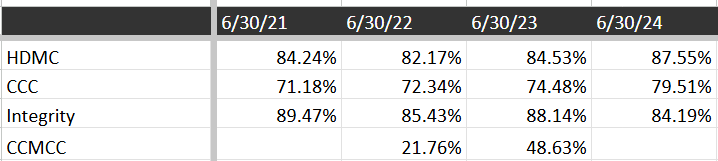 In order to receive title IV loan funds (over 80% of revenue), colleges must be part of a Program Participation Agreement (PPA). When colleges are acquired they are put on a temporary month-to-month PPA during which time oversight is higher and certain activities are limited (Requires prior ED approval for new programs and locations). During this time the Education Department is supposed to review the program to approve it for the long term. HDMC and CCC have standard PPAs. However Integrity (acquired 2020) and CCMCC (acquired 2024) are participating under temporary provisional program participation agreements (TPPPA). (LGCY 10-K)